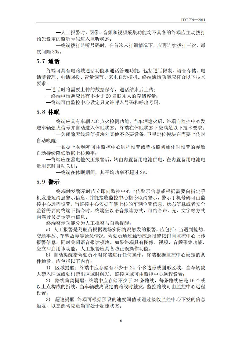 JTT794-2011 道路運輸車輛衛(wèi)星定位系統(tǒng)(車載終端技術(shù)要求)