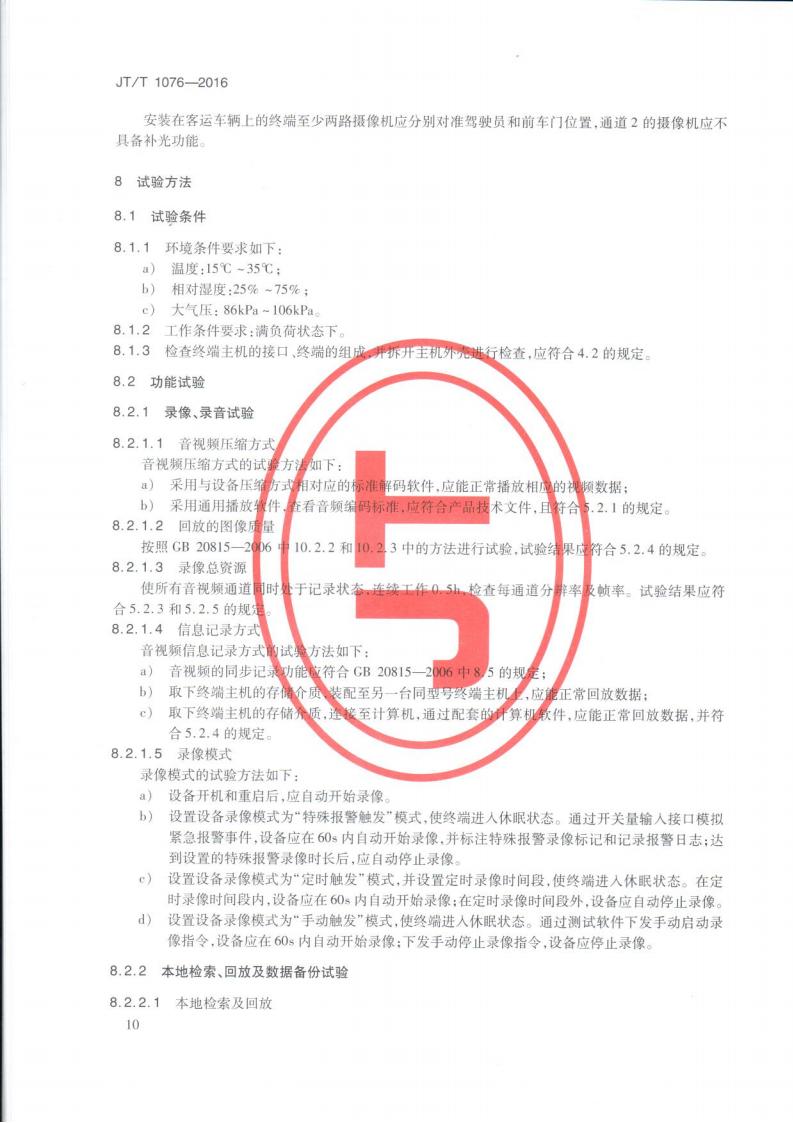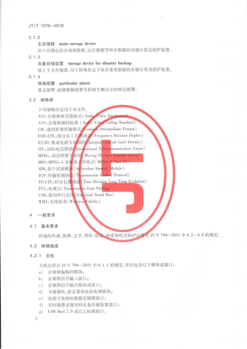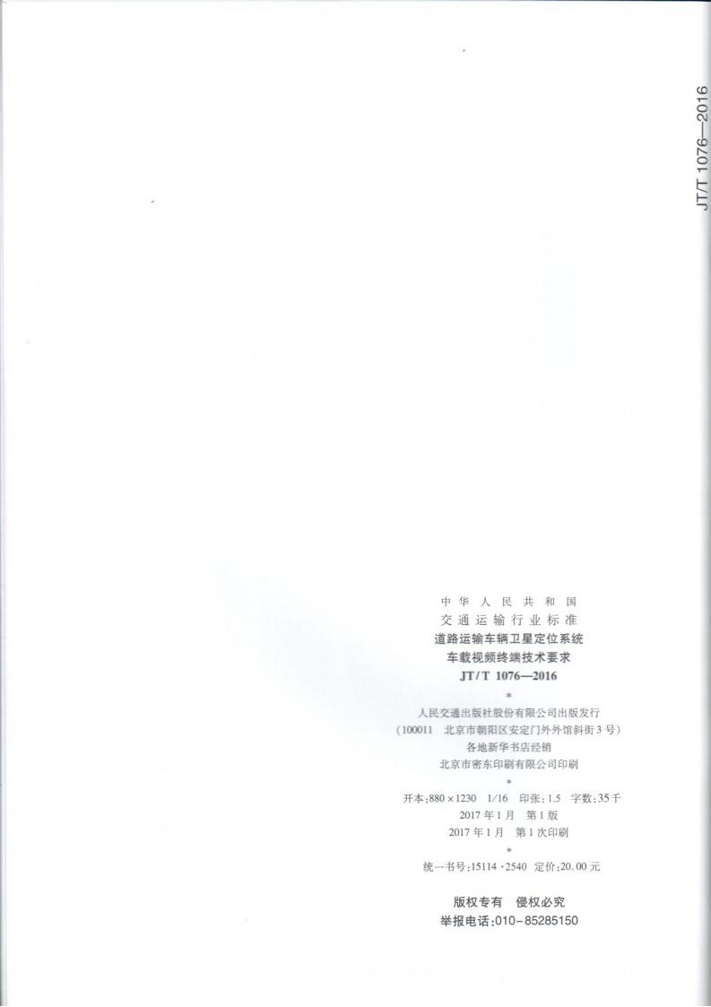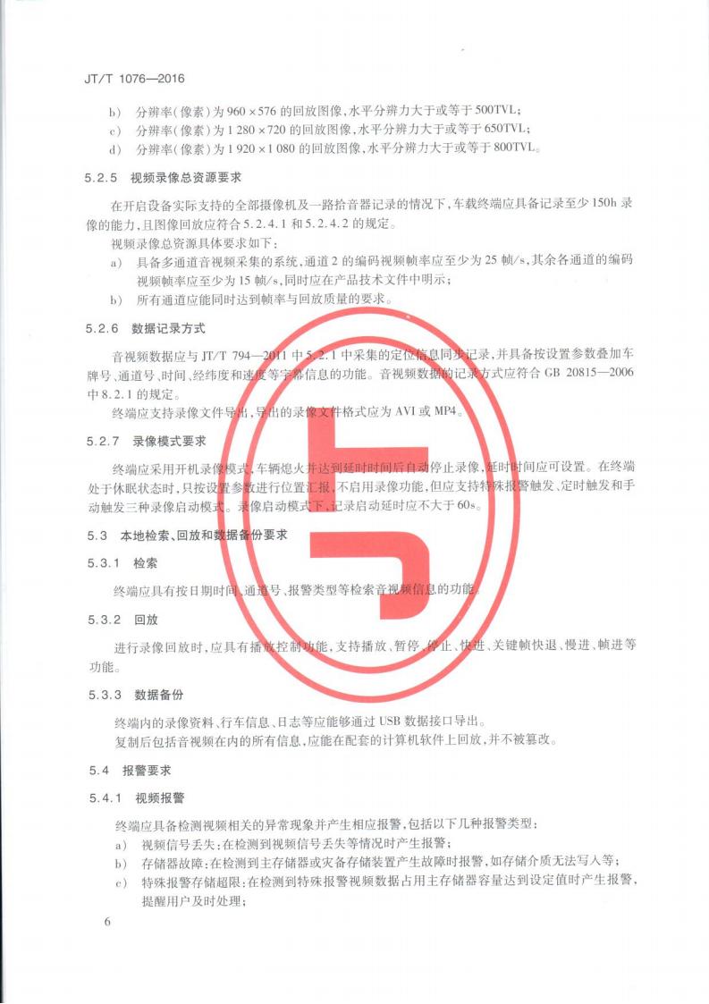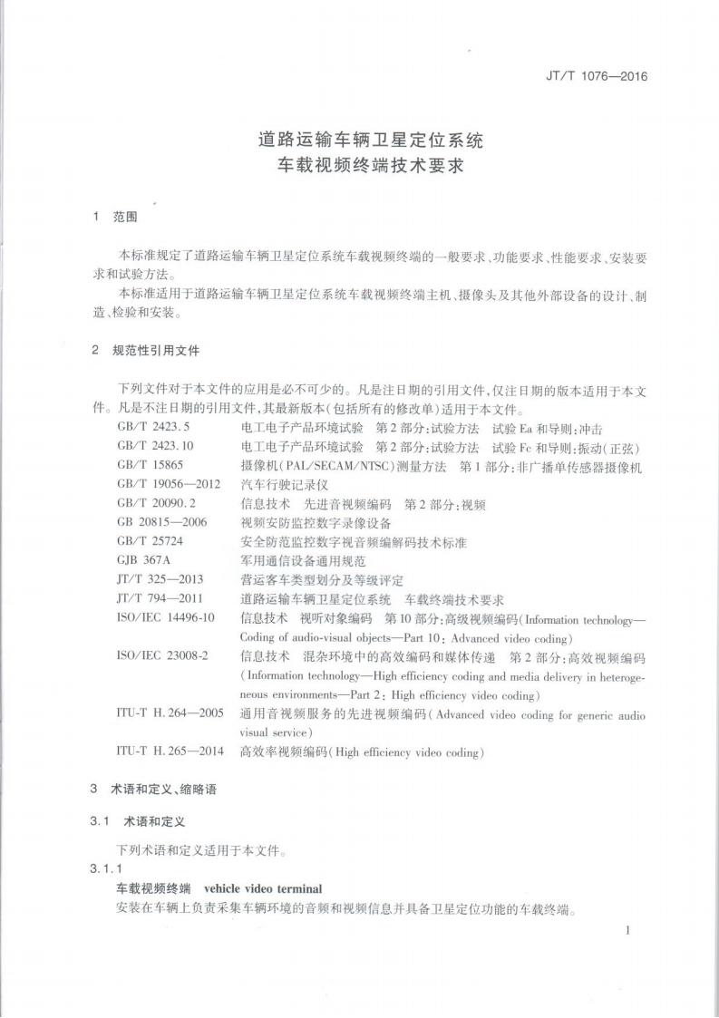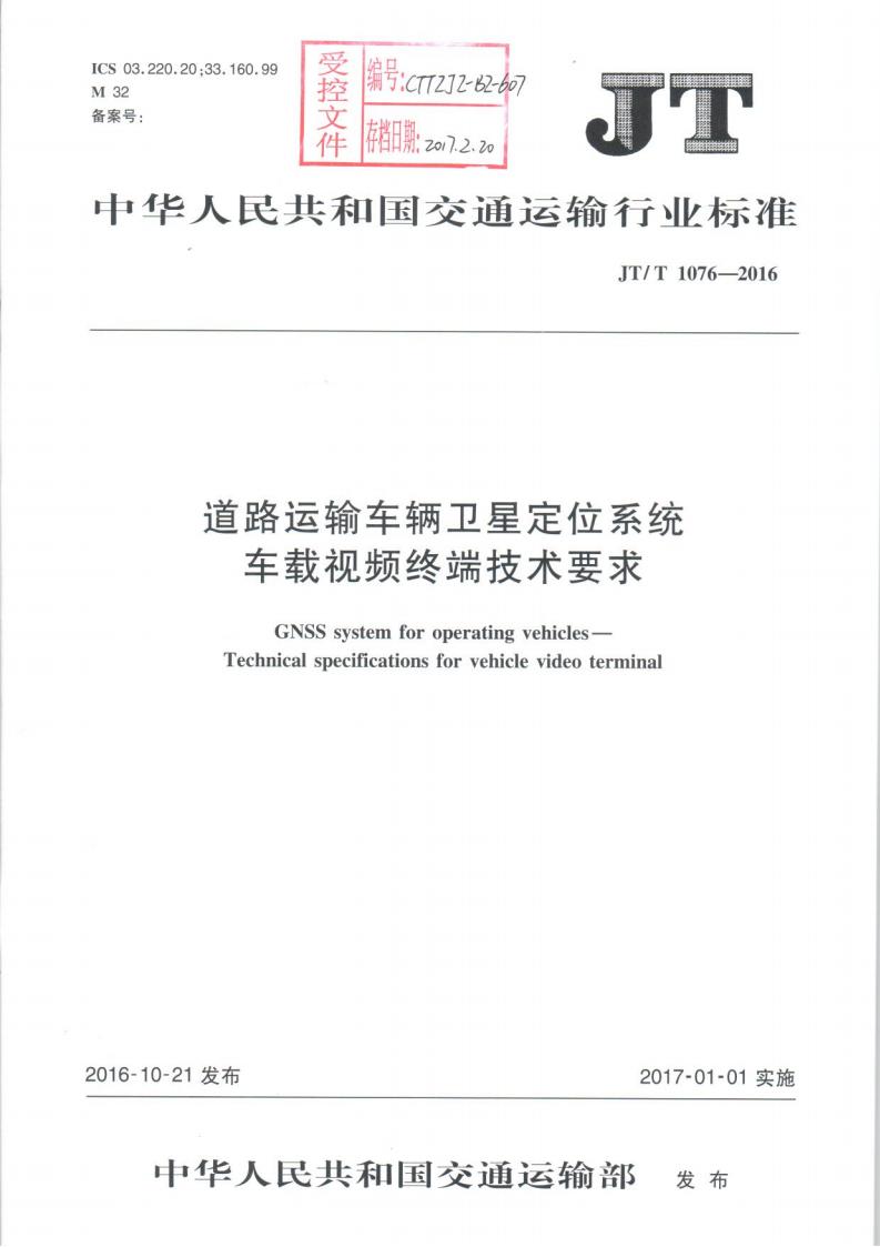 JTT 1076-2016 道路運輸車輛衛(wèi)星定位系統(tǒng)車載視頻(終端技術(shù)要求)