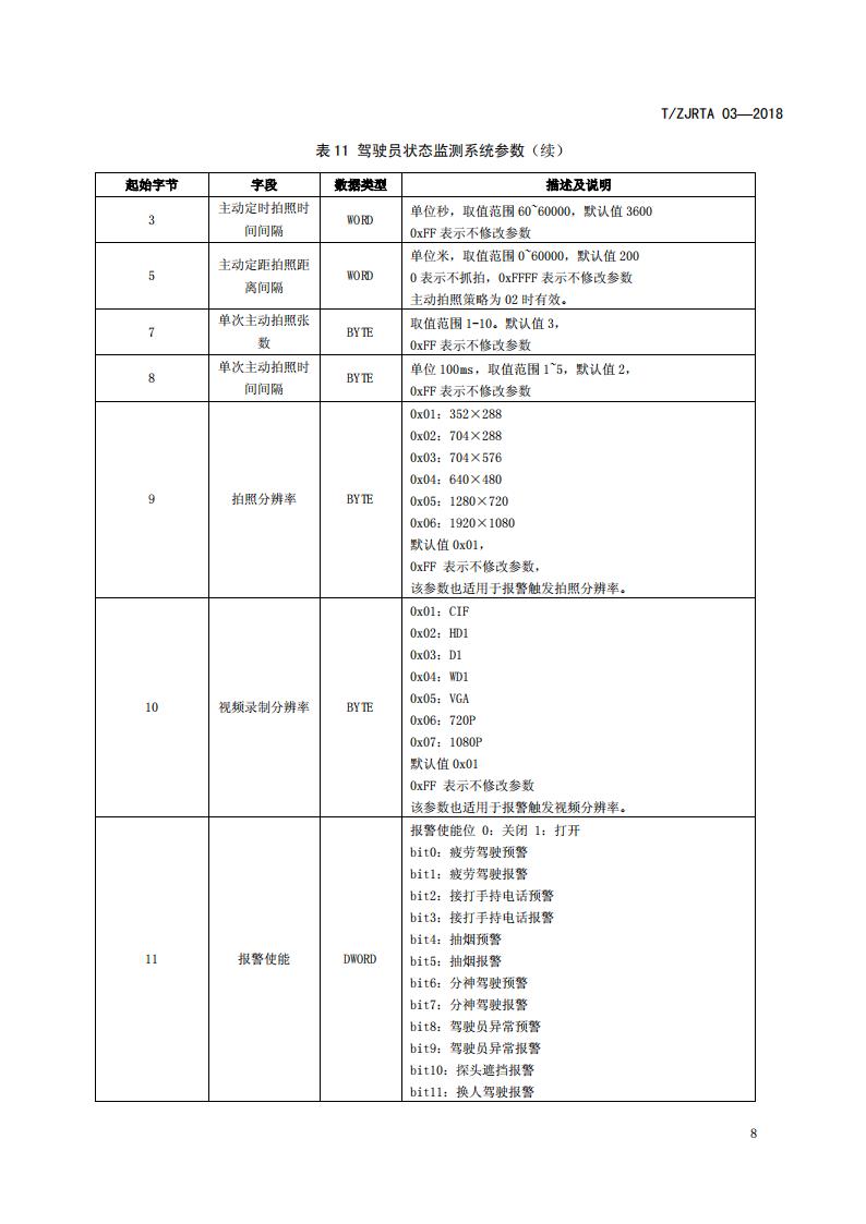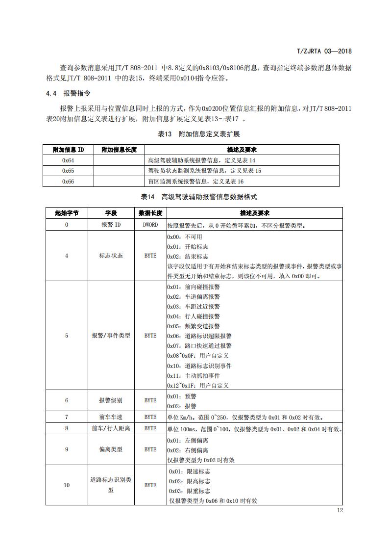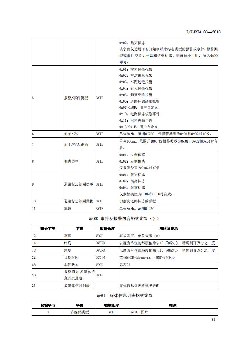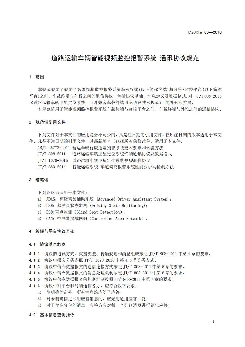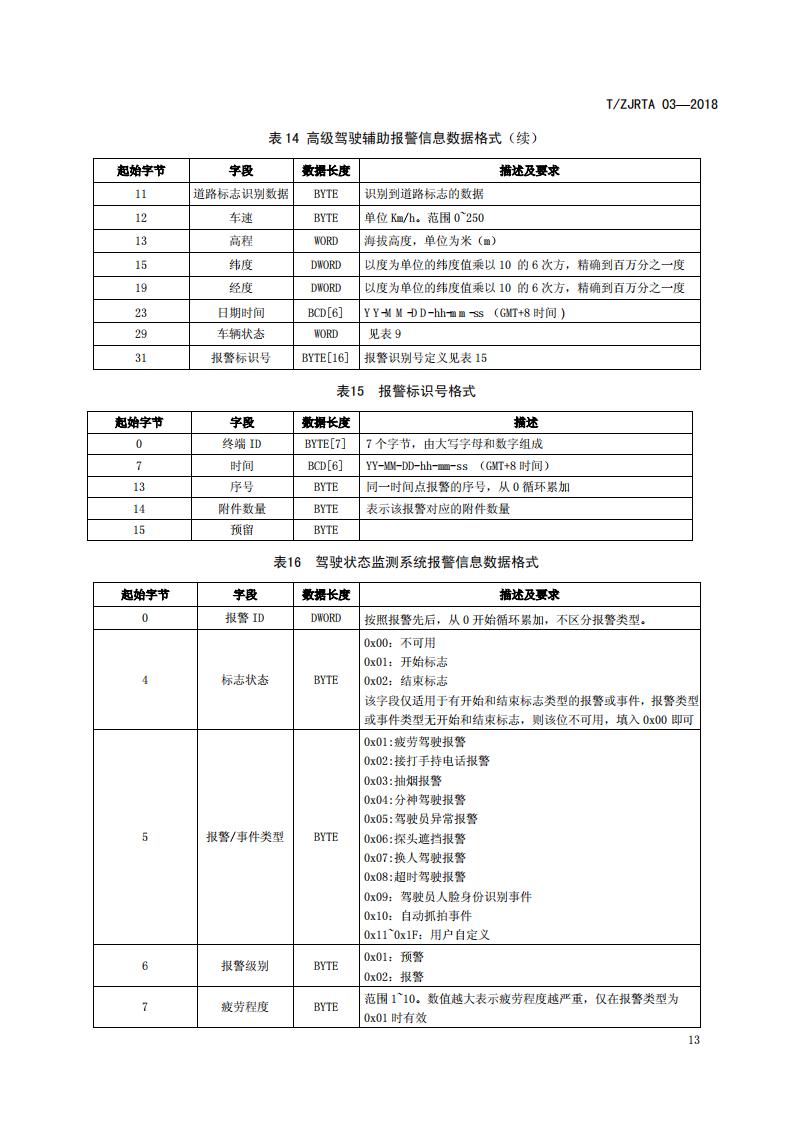浙江省 TZJRTA 03-2018 道路運輸車輛主動安全智能防控系統(tǒng)(通訊協(xié)議規(guī)范)