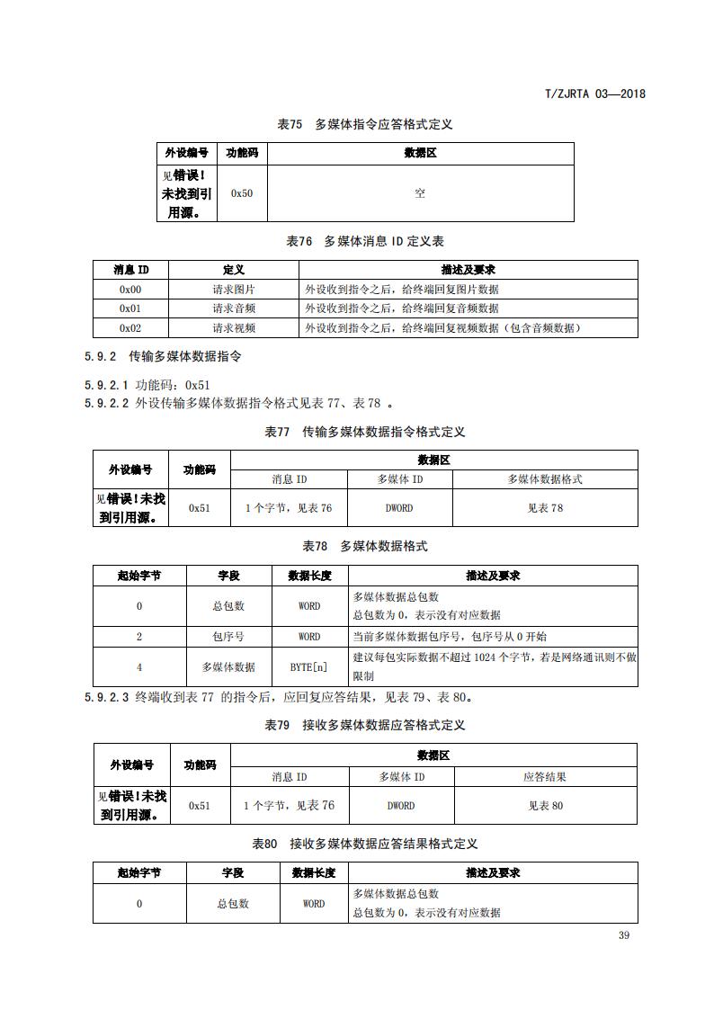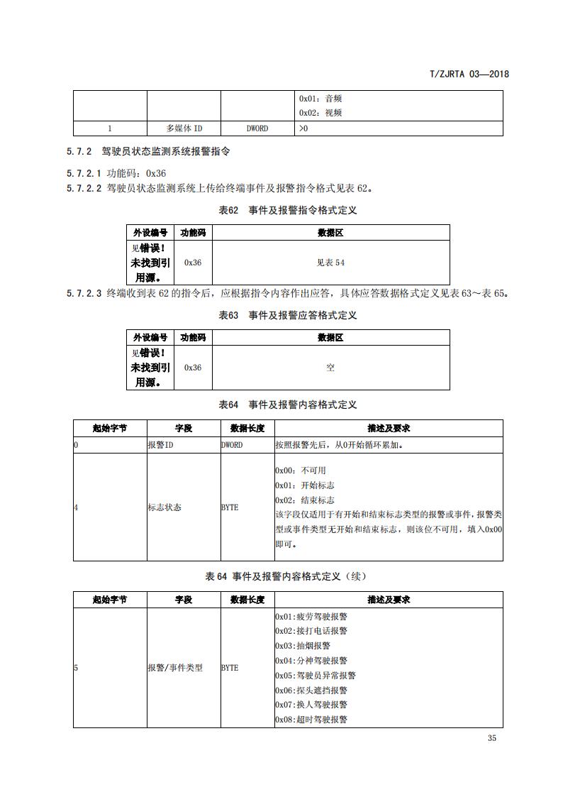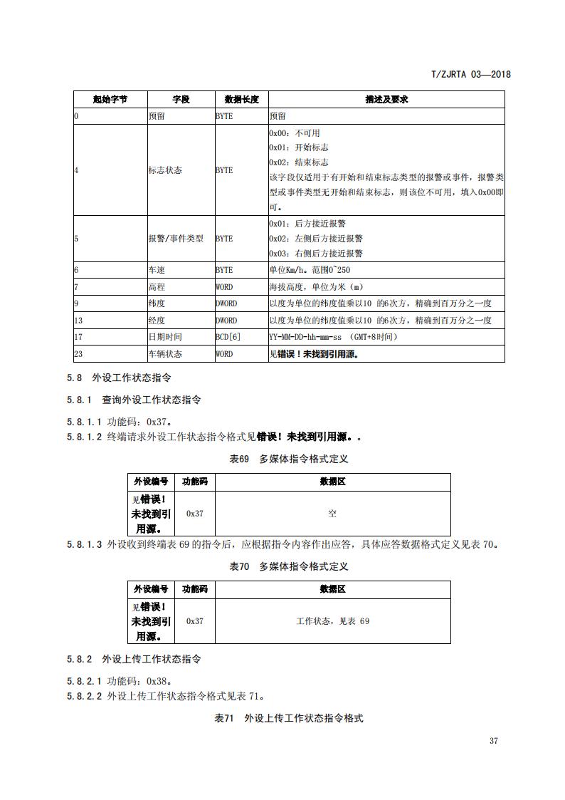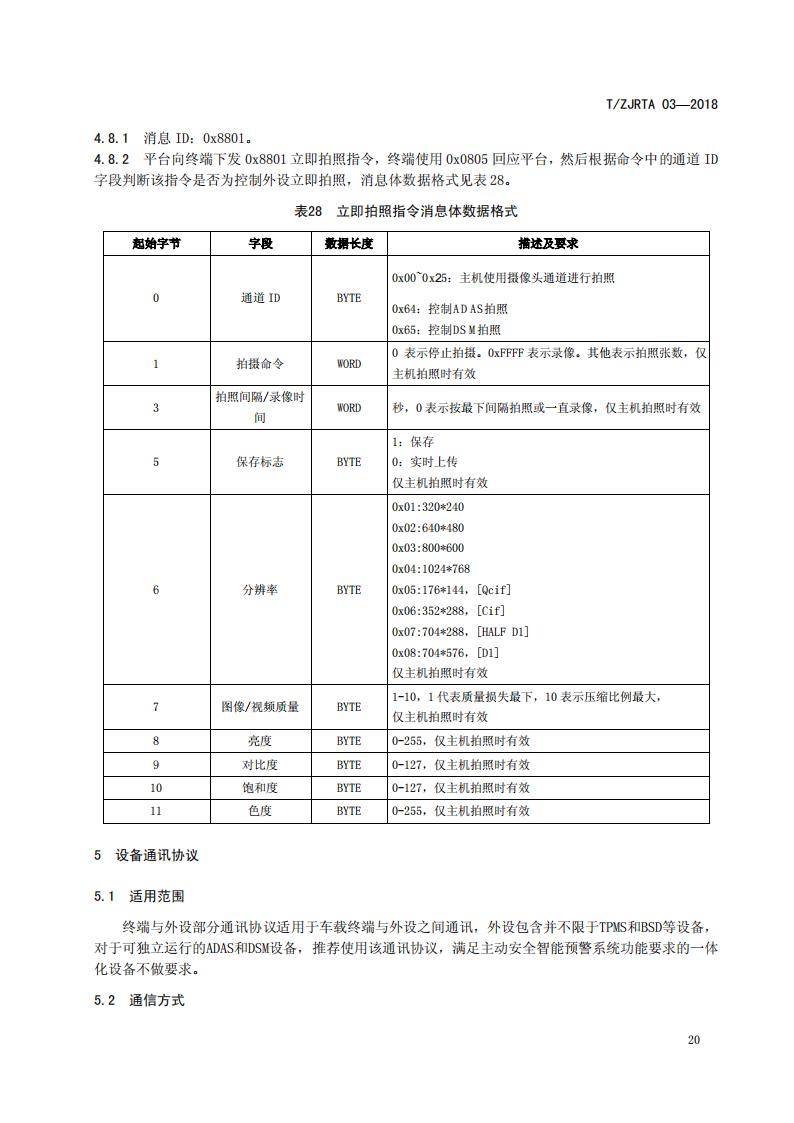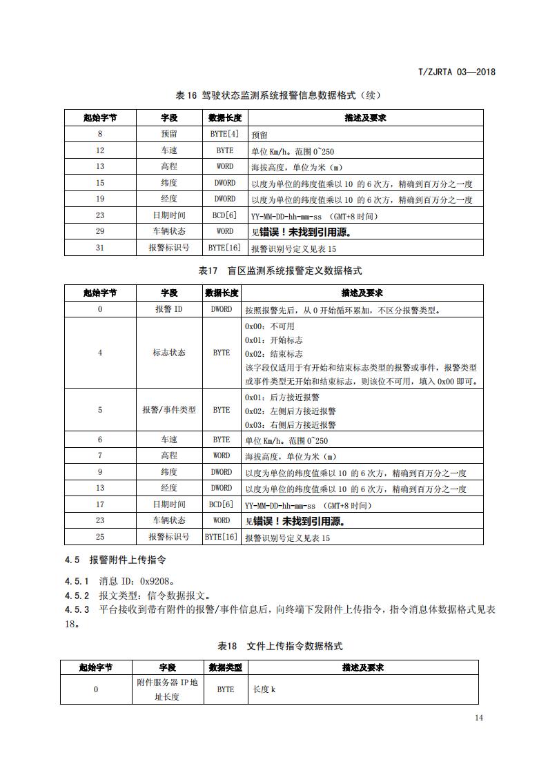 浙江省 TZJRTA 03-2018 道路運輸車輛主動安全智能防控系統(tǒng)(通訊協(xié)議規(guī)范)
