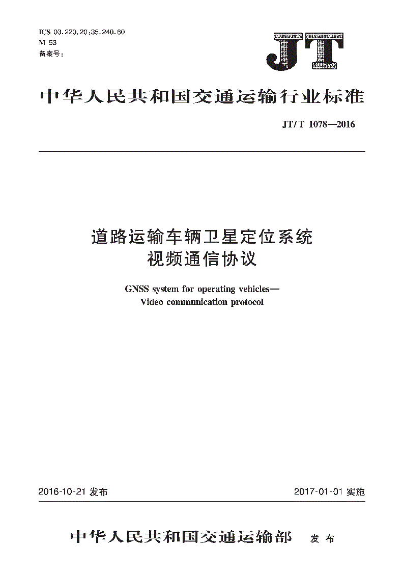 中華人民共和國交通運(yùn)輸行業(yè)標(biāo)準(zhǔn)JT/T1078-2016道路運(yùn)輸車輛衛(wèi)星定位系統(tǒng)視頻通信協(xié)議2